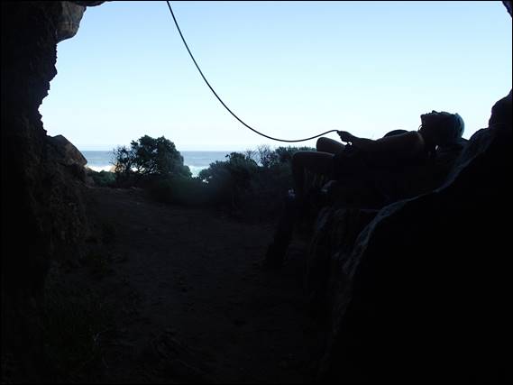 Jaime was happy to assume belay position again. Rongy and I asked each time she assume position if that was OK and she rightly pointed out later that we had all belayed the same amount just from different ends of the rope. I was really unsure of two things for this line, firstly if Rongy would like it, as not only had he not climbed it before but he didn’t know it existed. And secondly how Jaimie would find it. It was wet in this area being trapped away from sunlight or drying winds, and with overlaps and rooves above and the huge leaning block that forms the Stormcock to the side: