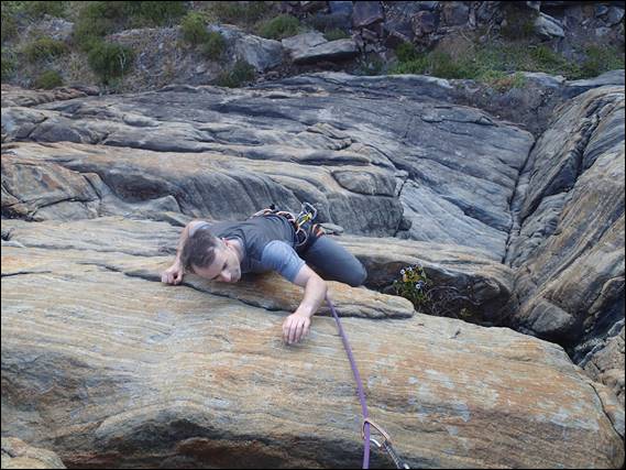 We were taking our time and while the two routes hadn’t put Matthew off, he wasn’t too keen to go much harder on the first trip out. He was however keen to wandered across to The Playground. Here the rope and rack stayed on the deck, as we played about bouldering. It was a lot of fun and I even jumped on Slimeball, which I had given a grade of 19 when we first recorded it. On The Crag those who have since repeated it reckon it is V3, which is about grade 24. I really don’t think so, even today it all felt not too bad and 19 is more than fair: