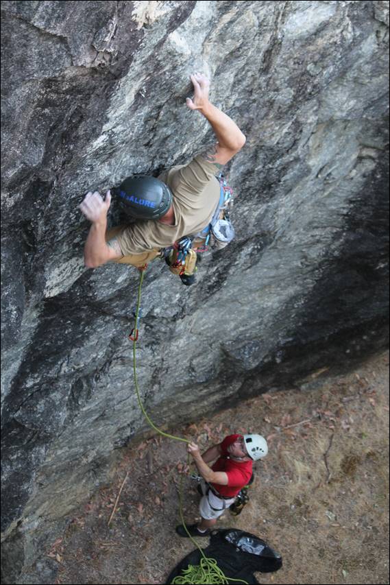 I stuck to my line of choice. And like both Rongy and Howsie, once I got to the crux the rope started loose, then went tight as I fell. This continued with the rope being loose, tight, loose, tight. One thing was for sure today we were all trusting and pushing ourselves, right to our limits. Unafraid of coming off, which might seem a strange thing to say. But that fear of falling will restrain many a climber from attempting, let along getting up, lines above their comfort zone:
