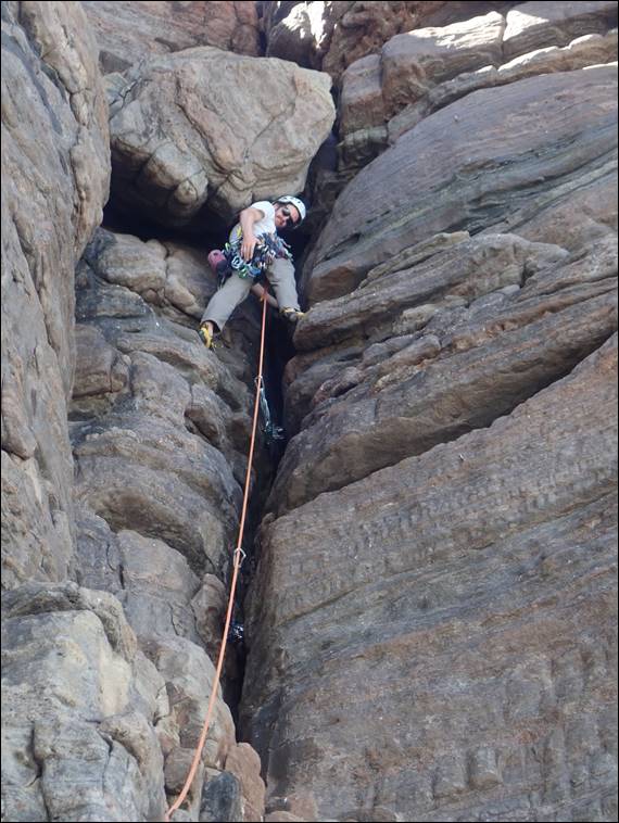 You might notice above that Ash not only had a harness full of hardware, but he also brought along his big gear. I’ve only used a No.5 and 6 Camelot once, with Kym when I took on what felt to me like a brutal off-width. Not big enough to wedge your body in or arm bar, but not narrow enough to jam with one hand. But while I haven’t used them at Wilyabrup, it didn’t mean we couldn’t find a route or two for Ash to use them. Orryjohn seemed a likely candidate, a wide crack at the back of a chimney. Like his first lead he throwing the gear in at every opportunity: