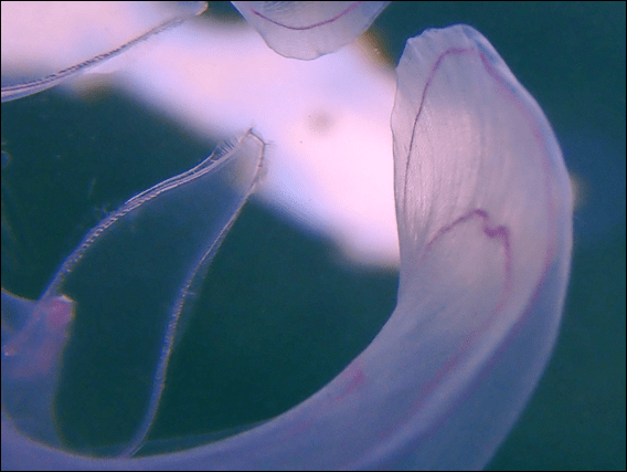 The stinging type is found in Australian waters, but it is not the ones I see. Or at least I have not to date been stung by them. Watching the light catch the rows of tiny hairs move in unison along each ridge is quite special, so I always stop and spend time with these gentle jellies. Today however, and on three occasions, I found something else hovering right next to them. And as I moved round to get a better look the tiny newly hatched Horseshoe Leatherjacket (Meuschenia hippocrepis), would swim to the other side of the jelly. I took lots and lots of images in the hope one would be in focus: