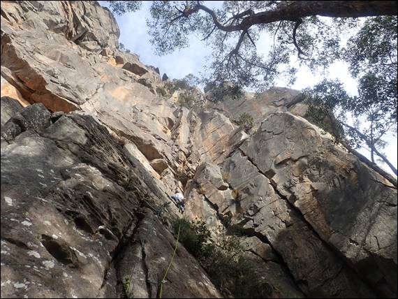 And who would have thought one of them had also worked for several years in Basingstoke in the UK, where I had grown up. It’s way too small a world. Dan and I eventually left them to it and hit the sack for the latest night of the trip at ten o’clock. The next day was forecast to be the hot one, which was partly why we had decided to move onto another crag. I reckon I could have climbed at Mount Rosea for a week or two and not got bored, but today we headed to Bundaleer as it got shade by mid-morning. Single pitch climbs, but the crag had a good height reaching 50 meters and more in places: