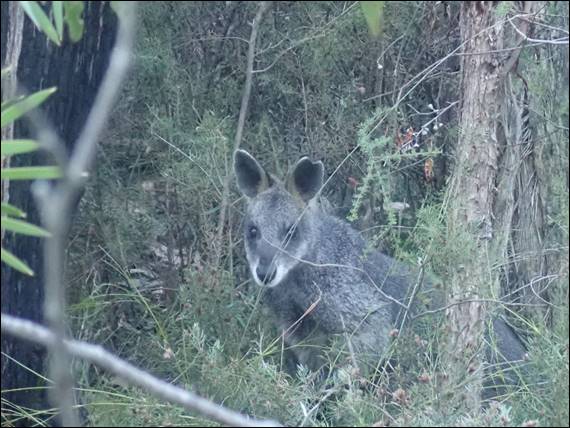 We had a bit of a chat with them, but after a long day out I was keen to hit the sack way before they did. Dan provided me with some earplugs, he comes prepared for such occasions and being Easter it wasn’t overly surprising that we didn’t have the place to ourselves. The chatter and laughter carried on for some time. The earplugs dampened the noise enough to allow me to get some sleep and in the morning, not surprisingly, we were up before anyone else. As was this Swamp Wallaby (Wallabia bicolor) that sat there, occasionally growling and hissing as it observed Dan and I for a good quarter of an hour: