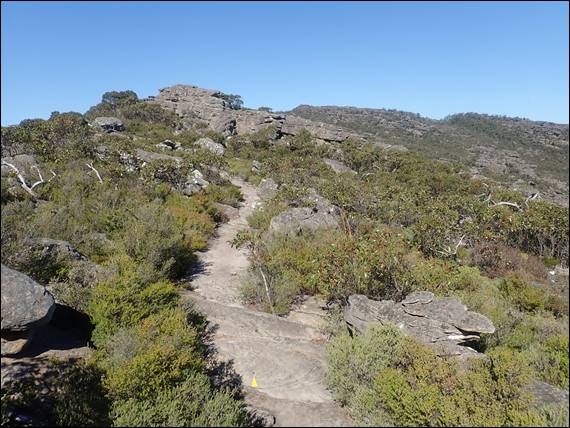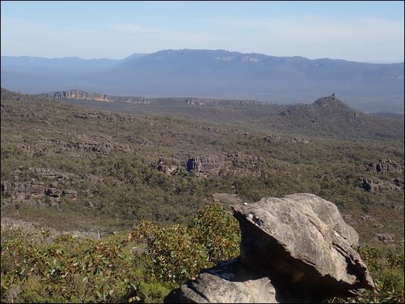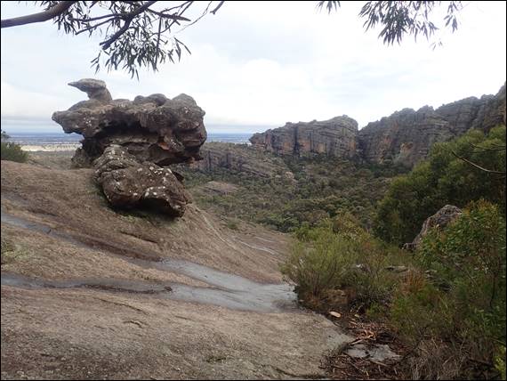 There was only one option and that was to go for a walk, for which we liked the idea of avoiding the masses that were milling about the trails round Halls Gap. We turned back to technology and checked the weather radars and the decision was made. The best option was to go south to Mount Abrupt, a 6.3km grade 3 hike, with spectacular views and not a hint of any rain on the radar. It cleared up as we drove down, but as we approached our destination that as the name indicates abruptly appears in the landscape, it too had its own weather cell over it. Unperturbed we ascended the almost 500m to the summit: