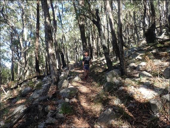 I’m not sure if it was due to the sun being out today, but below in the valley there was an almost continual hullabaloo. Sulphur Crested Cockatoos were screeching, flying in flocks here and there providing speckles of white in the dense green canopy below. The deer were also grunting away like fury, it was rutting season and all the males were puffing out their chests. The sound bounced up the steep walls, and neither of us recalled hearing anything like it on the first two days, and nor did we hear on any subsequent days: