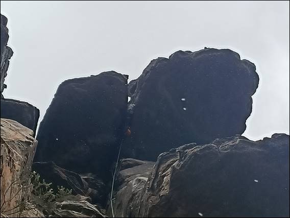I woke at my usual early time, and heard the rain continue past the forecasted 3am. Resulting in the morning being that bit more damp than we may have hoped for. Dan frantically inspected the guide and The Crag for wet weather options, and in a reversal of roles from the day before, today I was the one to say let’s just go for a hike. This is what we did, and it seemed the right option. Water ran down the runnels carved into what is call Flat Rock, something Dan said he had not witnessed before. Although what is more likely is he doesn’t come this way when the weather isn’t ideal, we just happened to get caught out: