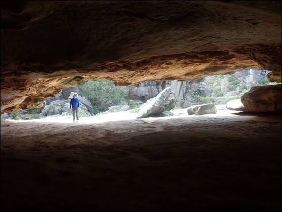 One of the reasons the hike I did all those years ago stuck in my mind was where the path went at Hollow Mountain. There was an opening at the top and I had to scramble inside. Here a series of interlaced rock shelves allowed me to descend, eventually popping out part way down the peak to continue on the hike. Dan wasn’t aware of this part of any hike and looking on the web I can find no reference to it. I can only guess that part of the trail has been closed off some time back for cultural reasons. It also seems that, from more recent posts, the loop walk has been neglected for many years and it is certainly not listed in any current official walking guides:
