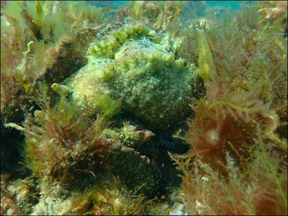 The reason for mixing the two already complex compounds is due to the interaction of components within them resulting in another aversive compound. But like I said I didn’t observe the physical directing of the mixed compounds, and I wasn’t really sure why the sea hare was displaying this defensive mechanism. It was only after I moved round to the other side that I noticed there was a second sea hare underneath, and I assumed they may have been mating. But I am now unsure of that as well, as literature indicates sea hares are hermaphrodites and usually mate in large numbers by forming a long line, as opposed to being on top of each other as I observed: