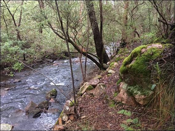 The film had incredibly little relevance to our waterways, but during the Q&A session there was a lot of discussion about the poor and degraded state of our waterways. This is true for many waterways but not this reach of Cowaramup Brook, which I would say is near to pristine with only a few weeds here and there. I was having a little trouble identifying where I had to cross the brook, a path up the steep bank on the other side should have been clear. But I found none, so I just kept following the brook way further than I should have. To the point that the path disappeared and I had to start bush bashing: