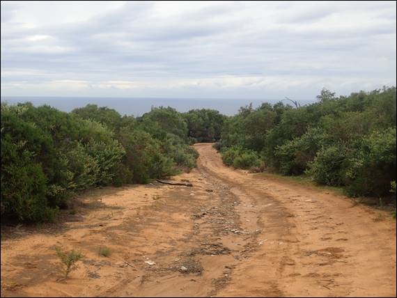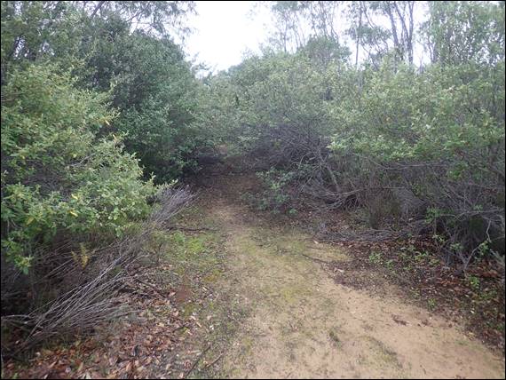 The first couple of kilometres had chewed up close to an hour and half, which looking back didn’t surprise me. But being back on such an easy wide track to follow I was still confident I could make the time up. The track had quite a few junctions and I pulled out the book at each one to make sure I didn’t come a cropper a second time. I also reverted to using my phone a second time when the book simply said turn left (south) and follow a sandy track through peppermint, wattle and basket bush. This was that sandy track: