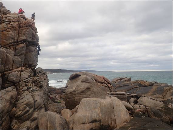 Before I left for the UK and after my last climb at Smiths Beach I had suggested I might not get back on rock until next weekend. But Lisa is very understanding and accommodating, or should I say tolerating, of my insatiable desire to climb. I think my drive to get out today was further fuelled by the opportunity I had in England to solo a few routes from the old days in the Peak District. Then, added to that a mottle crew were available and keen to see if we could nab a morning session, despite the continued wintery, wet and windy weather: