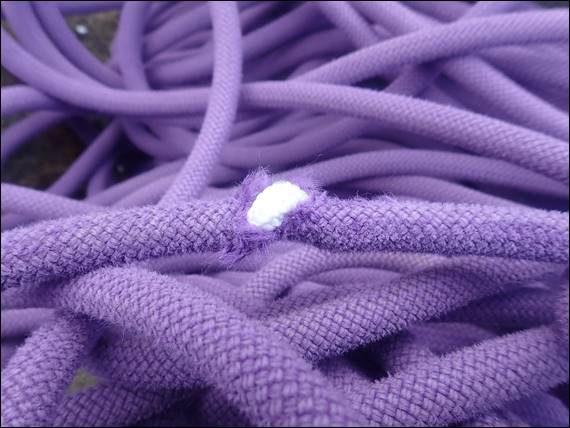 During Craig’s attempts the abrasive nature of Moses Rocks, which makes it feel so much like Millstone Gritstone found in the Peak District of England, bit through the sheaf of the rope. The sheaf being the protective outer skin within which the brilliant white core of the rope, now fully exposed, shone through. As I had packed my bag for today’s trip I had been thinking that it may be a good idea to cut this rope, to make a smaller and more manageable length for the crags we have in this area. And it looks like I will be doing exactly that now: