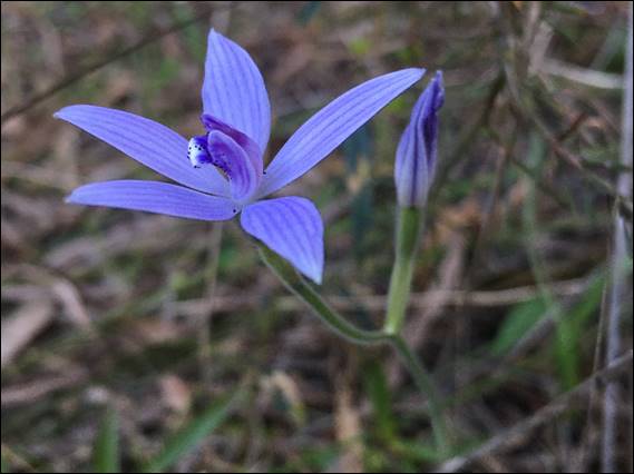 So that is now three species of Donkey orchids this season, but I have a long way to go. There are approx. 120 species of them, of which 48 (so far) have been spotted in Western Australia. These orchids can also be found for a long time, with the first species flowering in May and the last in February. One of the last being the Heberle’s Donkey Orchid (Diuris heberlei), found along the Albany coastline, and which looks quite different to the Donkey orchids we find here. I’ve not seen that one but I have spotted the Late Donkey Orchid (Diuris emarginata) that flowers until January, which is similar in appearance to the Heberle’s Donkey Orchid and an image of that can be found in this post https://sandbagged.blog/2021/11/28/a-most-unexpected-journey/: