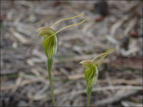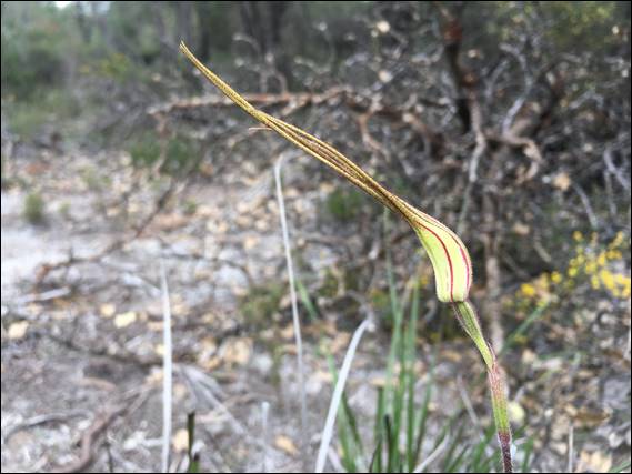 There were lots of other orchids popping up, but yet to flower. Such as the above spider orchid and I’ll have to head back next week to see if any are blooming. I’m not brave enough to try and guess what species they are until they open up. And even then it may be tricky especially if they are one of the white variety. I also saw heaps of withering greenhoods as well as healthy jugs and snails. Again maybe being overly hopeful of a new find, due to the long backward pointing sepals. But there is nothing in my book to indicate I found a different species of Snail Orchids: