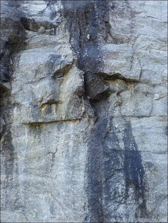 The loose rock didn’t worry me, as cleaning the line would be part of developing it. What put me off was that sections of the climb got a bit too close to the routes on the left and right so it was not independent enough. It seems that past climbers had also spotted this possible route, and had gone a step further by drilling a few holes for bolts. And like them I too will not pursue it any further. Looking at my last possible climb from the deck it seemed it might be too easy, but I was wrong and it was great. Better still it was completely independent, inescapable, and had no signs of prior interest: