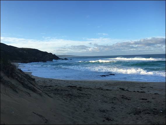 The above image is the best I managed to capture, failing to get the blow. So from memory and based on what I have found out I think we saw two humpback whales. My assessment was made a bit easier by the fact that we generally only get humpback and southern right whales along this coastline, although there is a slight chance of spotting blue whales. So today I learnt all about whale blows, and have more facts stored in my memory for another time, while Sam was being introduced to the joys of the rock at Moses: