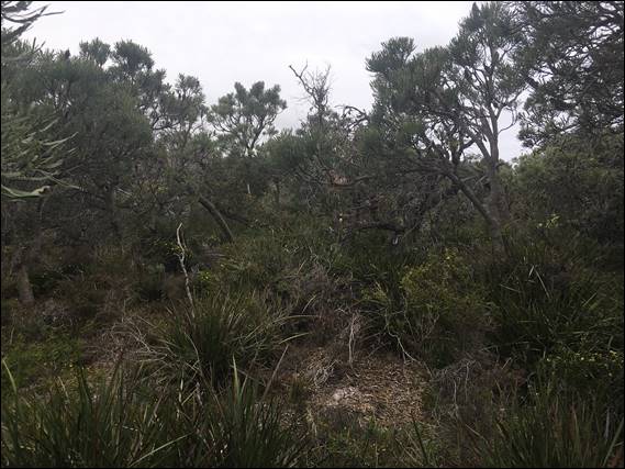 The landscape here comprised low scrub, with no protection from the elements. And today there was a stiff westerly coming from the ocean, and above it was all a bit grey and murky. In fact it had rained most of the way down and I did wonder how I would go. The condition was however not such a bad thing, as direct sun tends to result in capturing good images a bit tricky. The white and yellows tend to reflect all that brightness back into my ‘point and shoot’ camera and stuffs up the contrast: