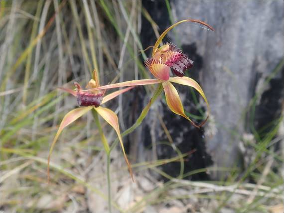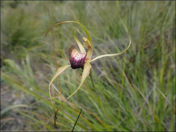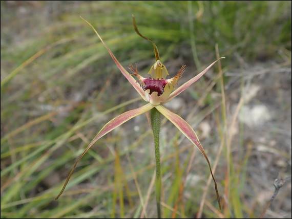 The next image from Ambergate is of a small sun orchid, possibly the Slender Sun Orchid (Thelymitra vulgaris). I have to admit I have been having real trouble in trying to identify the various species of sun orchids and the differences are very subtle. Seemingly even more so than the variances in white spider orchids, which I kind of gave up on a bit earlier this season. The next two spider orchids (images above) are repeat finds, being the Swamp Spider Orchid (Caladenia paludosa) and Rusty Spider Orchid (Caladenia ferruginea) but I couldn’t resist including them: