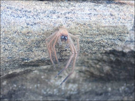 Ash was intending to join us, but sadly was a no show. Sarah also indicated that she was keen to get out again. However, forewarned of our challenge this time she stuck to reptile hunting, and you may remember she loves our scaly friends. At the top of the first route I thought I was lucky to spot the above exoskeleton, which I think is from a Huntsman Spider (Sparassidae). However, back at the base my find was well and truly trumped when we found Sarah handling a Carpet Python (Morelia imbricata) she had spotted and managed to catch. So no matter what else she might find, she was happy as a pig in poo: