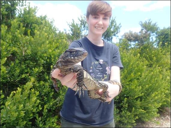There was still one more surprise in store. Walking out, leaving the hoards behind us, I spotted a tail sticking out from under the scrub and stopped in my tracks, as did Rongy and Sarah. Sarah then very slowly put her bag down and pounced managing to get hold of this unsuspecting Southern Heath Monitor (Varanus rosenbergi). It was pretty impressive watching her go for it with such confidence, and great to get a close up look at the monitor before she released back into the scrub. It had most certainly been “a good day out” for all three of us: