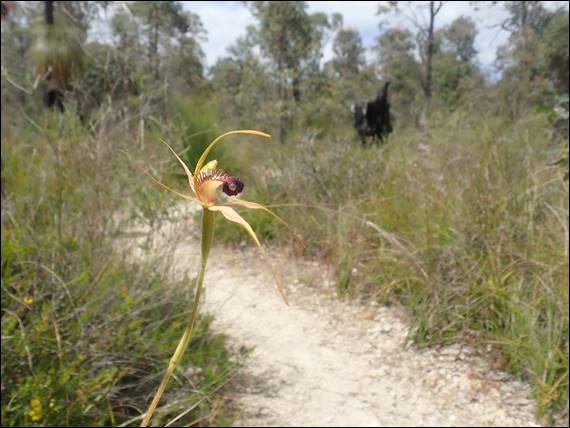 For those that may be wondering if I have given up looking for orchids, the response is both a yes and no. Certainly as summer approaches and the land dries and temperature warms up, the abundance and variation of orchids on display in our area is declining. I’ve been out hunting a few times, but have not come across any new finds or anything particularly startling. In a way it feel like it has all come to a rather abrupt end this year, and the only orchid that I am hanging out to see come into flower are the Slipper Orchids (Cryptostylis ovata) at Manea Park: