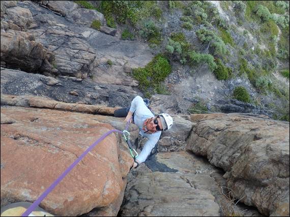 Being a slightly scrappy crag, he was able to avoid the hard part and came up with an ear to ear grin thoroughly enjoying the climbing, but also just being out. Having got the new route out of my system (https://www.climberswa.asn.au/topic/wilyabrup-the-organ-pipes-2/), we hit a couple of easier routes before jumping on the crag classic. It was clear that Ash was now pulling pretty hard to stay on. And while the security of the rope above gave him the confidence to keep moving, it was a sign that it was time to wrap things up and hopefully Ash won’t wait so long before his next trip out:
