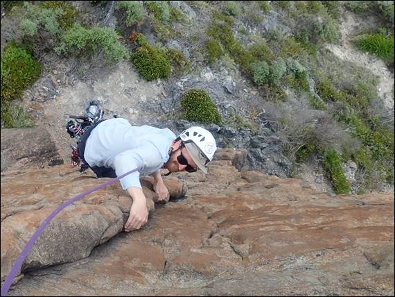 A sixteen hour round trip to catch up with friends down in Esperance was just a bit too much to think about for Ash this weekend. This worked out well for me, as it meant I had someone to hold the rope and I didn’t have to go solo again. As Sam found out last weekend, having the rope below you brings a whole new perspective to climbing. Something that you can probably guess I relish. So while I will resort to top rope soloing if I have to, my preference will nearly always be to be on the sharp end:
