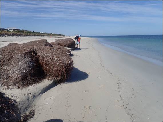 After a successful dive yesterday I was keen for a second dip before the usually relaxed start to the working year, during January, would come to an abrupt end on Monday. You may be pleased to know that this also signals a likely slowdown in posts, as my time to get out into nature will be mostly limited to weekends. Geoff was keen to join and suggested going in from the northern most beach access, near the Capel Rover Mouth. I have not been to this part of our local beach since last snorkelling season and was surprised to see seaweed piled up: