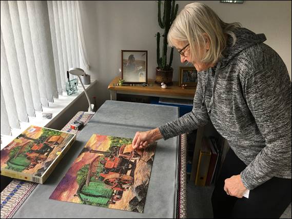 Back at the house and after a few cups of tea, it was time to crack on with the next puzzle. The second image of the post is of the first puzzle we completed. That one had sat on my Mam’s puzzle board for weeks if not months. The main reason being that her ability to stand over the table for any period of time is no longer possible. So I spent a bit of time polishing that one off, only to be disappointed to find two pieces missing despite the label on the box indicating it was a complete puzzle. A risk with second hand puzzles: