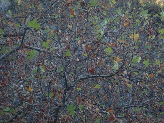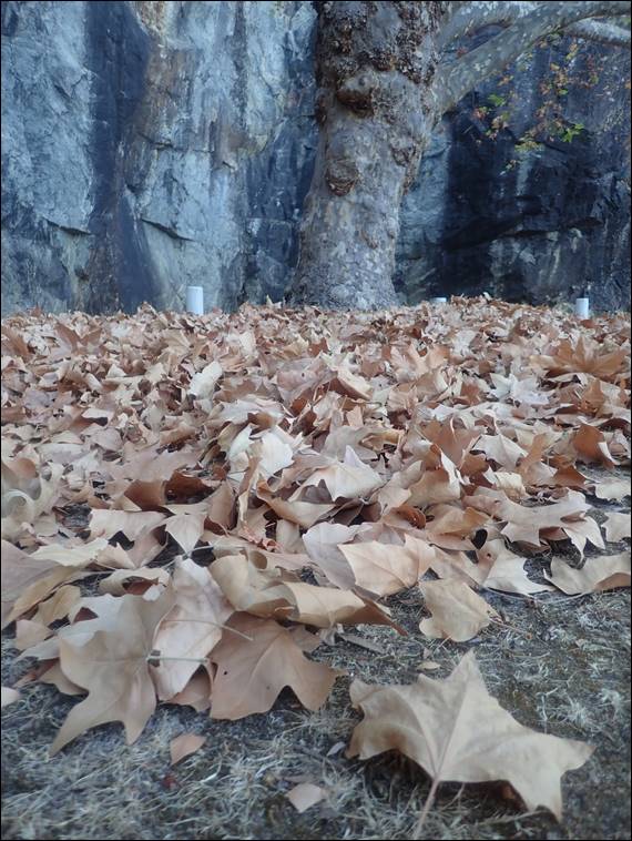 I’ve read up about a fungus called anthracnose. This causes the leaves of some trees including Sycamores to drop and turn black or brown. It is more prevalent in cool and wet weather, but can come on in summer. The good news is it does not result in permanent damage to established trees, but repeated back to back years of infection can weaken the tree’s resistant to the fungus and other pests. Being no arborist I can only assume this may be the cause, for the thick mass of leaf debris accumulating under the poorly looking tree: