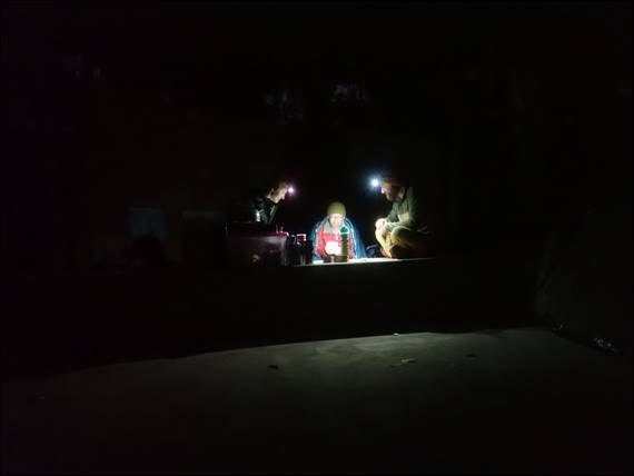 While we could potentially have got one more wet route in, we were all pretty weary so hiked back and set up camp. This gave us time to get some food down us and have a brew, before darkness quickly descended on the world around us. Fortunately the rain moved on and while the three of them had a game of cards, my body was saying it was time to lie down. So I snuggled into my bivvy bag, not even wanting to get up when I heard then talking excitedly about something they had spotted. That from what I heard I guessed was a scorpion: