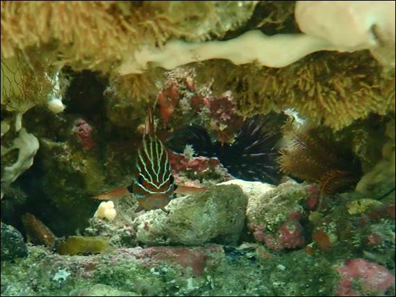 Despite trying pretty hard I didn’t find any crustaceans, cephalopods, mollusca, or cetaceans; or in layman terms crabs or lobsters; octopus or cuttlefish; nudibranch or sea hares; or dolphins. There were of course, like the fish, the ever present and visible echinoderm, otherwise known as sea stars and sea urchins. Swimming back over the open areas, fine dark organic material settled in the troughs of the wave-sculpted ripples on the sand, creating pretty patterns. But also a sign that should the wind and/or the swell pick up, this sediment will lift up and fill the water column: