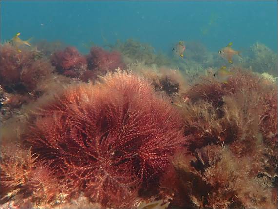 The visibility was ‘ish at best, and while there was a bit of life about it was hard to see well. The low angle of the sunlight was not helping my cause. As such rather than chase fish I decided to just soak up the feeling of being in the water, only going down for a closer inspection on occasion. I did like the above Lace Coral Bryozoan (Triphyllozoan moniliferum), which being a coral you may realise is actually a cluster of animals. These are less than a millimetre in size and called a zooid: