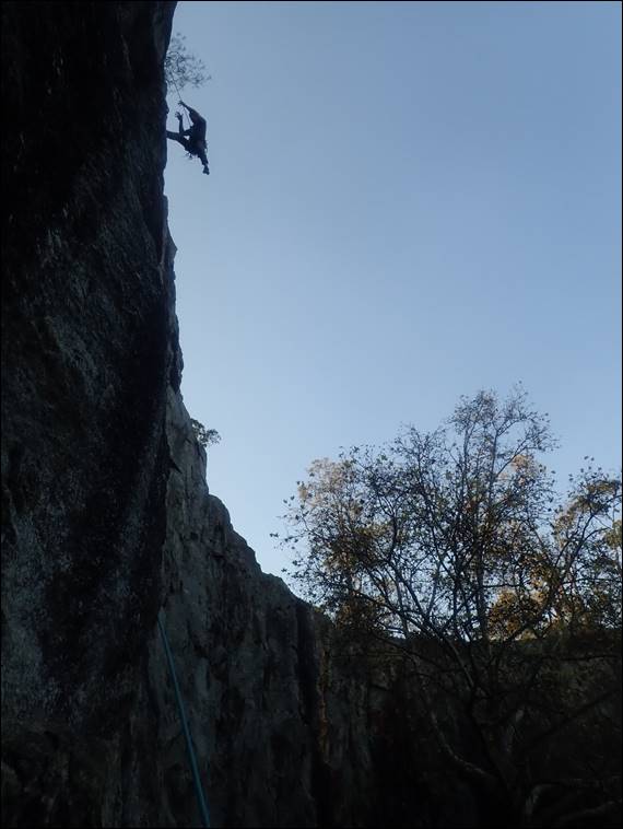 It was also a little too tough for Rongy to finish, with the top sequence flummoxing him. Maybe in part due to his level of climbing fitness. This meant I had to jump on the pointy end, which was the third time I’ve lead it. For some reason, each time it has felt slightly harder and I know it is not due to holds falling off. So much so that I wasn’t able to get a clean lead today, thwarted by the final crux moves. There is however no need to remain dark about such experiences, and we both felt so much better for the short but very enjoyable morning out: