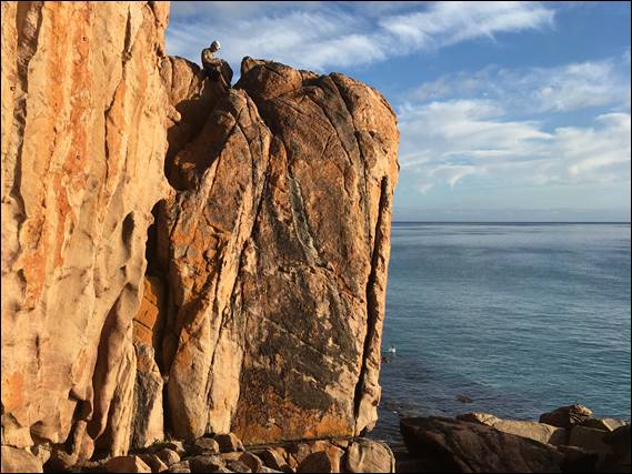 Yesterday afternoon Sarah sent me some great images of the resident Carpet Python that we so often see on two particular climbs that are next to each other at Wilyabrup. This time it was out in full and not, as we normally spot it, hiding in the flakes and cracks. She had snuck in a midday climb with Rongy, and with the warm sun on the crag the python had ventured out. This resulted in messages flying about, and my solo mission was being swayed towards a solo climb on the lines they had been climbing in the hope of seeing the python out and about: