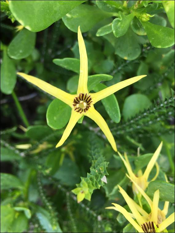 We also noticed the vegetation coming back included a lot of Yellow Tailflower (Anthocercis littorea), easily identified by the yellow flower a few images up. This is one of the coastal heath shrubs, being native to Western Australia and known to grow on coastal limestone and dunes. The plant can reach a height of three meters, but has a very long way to go to reach that size. Indeed we found very few remnants of the taller pre-fire vegetation, a sign that this place really was ravaged. That said, as always, it was a lovely walk and even better on arrival the rock was not looking to shabby: