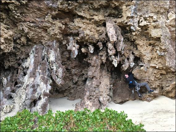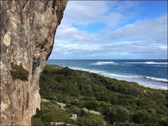 Not put off by the forecast, Rongy and I headed out hoping to catch a weather window. Reckoning the better chance would be on the coast of our little corner of the South West of Western Australia, as opposed to our other consideration of heading to an inland crag towards Perth. Based on this we decided on Bobs Hollow, which may seem strange as during winter the build-up of moisture behind the cliffs eventually results in a slimy substance oozing out of, and coating the surface of the rock making climbing pretty horrendous. However, I felt it was too early for this to happen and we stuck to our guns: