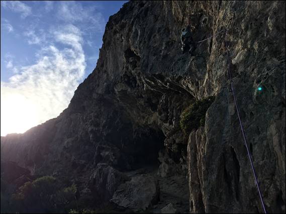 Another rain belt made land fall before we managed to get on a climb, but which such a steep overhung cliff it was easy to find shelter. Using this time to warm up the upper body muscles by having a boulder, which drilled home what we were in store for. It has been awhile since either of us have climbed routes of such a physical nature and we wondered how long we may last. What was on our side, however, was that we had not set our sights too high. Being out for the scenery, experience, and enjoyment. All of which was boosted as we scored that weather window we had been hoping for: