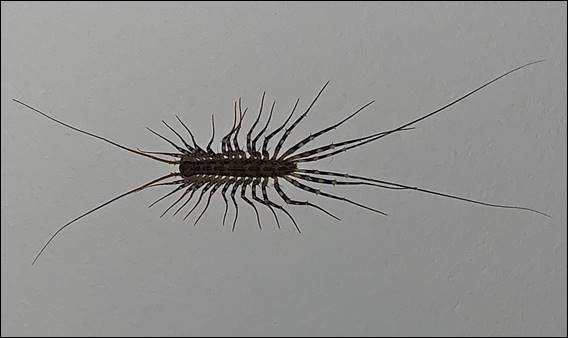 Having a degree of arachnophobia makes Lisa a little jumpy when she see’s things moving on the wall, and what with poor eyesight anything on the wall can look blobby and could be a spider. The other day this is what she found on the wall at the foot of the bed. The House Centipede (Scutigera coleoptrata) definitely looks creepy, but they are harmless to humans, don’t invade food supplies, being nocturnal tend not to be noticed, and are in fact a predator of the less desirable creatures that may inhabit the house such as cockroaches and spiders: