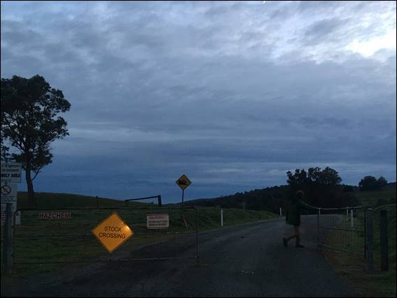 That said once she had seen it I had to take it outdoors, allowing her to have a good bug free night’s sleep. Speaking of which to get my quota I hit the sack early last night, as Howsie and I were heading outdoors bright and early. We opened the gate to Spring Grove Farm, just north of Pinjarra as the day woke up. Unlike the landowner on whose land the nearby Boobyer Boulders sit, which we’ve not been permitted to go to, after a short and polite exchange of text messages with Maurice, who owns this land, we were granted access: