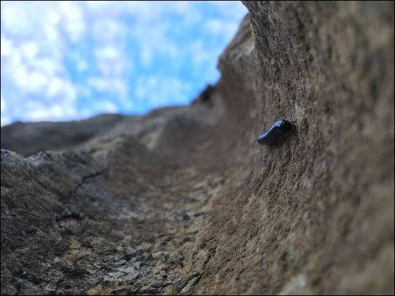 As such there were plenty of lines for the picking. Although on arrival water was running down the left-hand side of the face. This put the route that had made Rongy so nervous and the old bolted route next to it, which is the hardest line here, both out of contention. Before I introduced Howsie to the delights of placing and trusting cams in the blast holes, we warmed up on a few easier lines. The whole time needing to dodge the many Portuguese millipedes (Ommatoiulus moreletii), which were scattered all over the place: