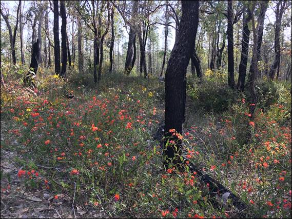 There were others I spotted at Capel, which I was equally excited about but I am also trying to refrain from repeating the use of the same orchids in too many posts. So onto Friday when I popped out for my first wander of the season round Crooked Brook. Josh, also from work, had been here last weekend and reported that there wasn’t heaps to see yet. It is however in many ways a different landscape to the places I visit more regularly on the more sandy coastal plain, plus a fair bit more had come out at Capel in a relatively short period, so I was keen to give it a go. The lower storey vegetation was certainly full of colour: