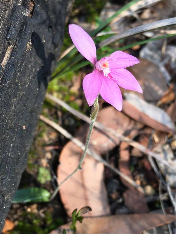 I also spotted a few Little Pink Fairy Orchids (Caladenia reptans), which can be found in clumps but I wasn’t that lucky today. They are often up against the trunks of live or fallen tree, maybe as there is more moisture available. Although there is also a theory it is because of the protection these locations provide the small delicate flower. While I had tempered my expectations this week, I was certainly not disappointed and it is fair to say I was more than pleasantly surprised. Then to top things off, just as I got near the car, a male Splendid Fairywren (Malurus splendens) that would normally not stay still for more than a few seconds sat atop a post for ages: