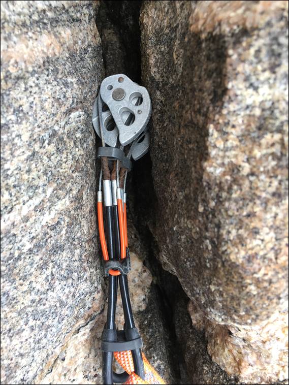 It’s been a while since Sarah has joined us for a climb, so we let her pick the location. I was happy when she picked Moses Rocks, which always offers a fun outing. There are two areas of Moses Rocks that she hasn’t climbed at, but the conditions today were not conducive for either of them. To be honest neither Rongy nor I had anything in particular in mind. So we dumped the bags at the first area the walk-in takes you past, and started climbing. Picking lines that we had not been on for a while: