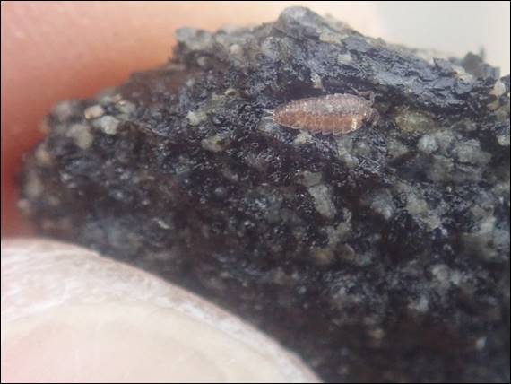 Not a reptile was in sight, despite both of us checking lots of nooks and crannies. Other than the occasional passing gull, the only creature spotted was this tiny Deto marina. It probably wasn’t more than a few millimetres long. Sarah spied it, and my eyes would never have noticed it without a magnifying glass. It is a genus of the woodlice family, and known to live in intertidal zones on or under rocks feeding on algae. There are five confirmed species, but only this one is listed as having been sighted in Australia on the Atlas of Living Australia: