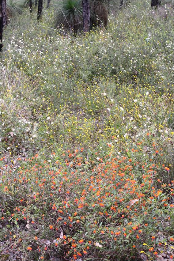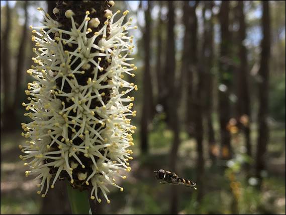 Despite the lack of orchids I managed to spend a very relaxing couple of hours scouring the area, and even took images of different ant nests with an aim to identify them for a post. Spotting amongst others Bull Ants (Myrmecia gratiosa) and Green-Head Ants (Rhytidoponera metallica), which have very different entrances to their nests. But when I discovered there are over 500 species of ants in the South West of Western Australia alone, I abandoned that idea. And we will finish that walk with an image of a flowering Grasstree (Xanthorrhoea):