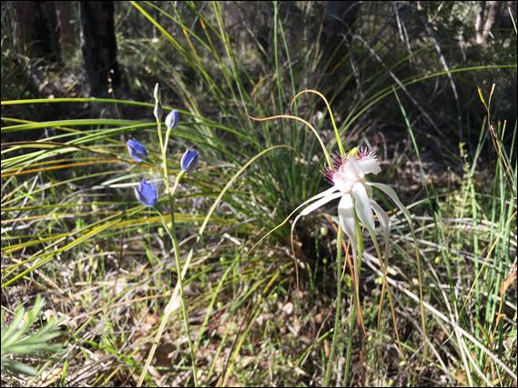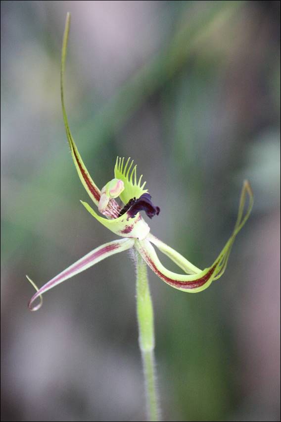 There were of course some orchids out, but I really had to look hard to find them. Sadly some of the beauties I found on my last visit here had already disappeared or were wilting. While a couple of the more commonly seen species were coming out to keep the numbers up a bit, such as the Purple Enamel (Caladenia brunonis) and Cowslip (Caladenia flava). The only new find for the season was the Forest Mantis-Orchid (Caladenia attingens), of which I only spotted one despite being described as a relatively common orchid: