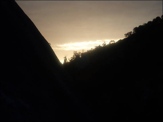 However, as the week crept slowly forward the forecasted temperature crept slowly up. This meant we could now expect temperatures in the high twenties. This is getting pretty warm, and could be uncomfortable especially as the crag is in the full glare of the sun, with no shade until after mid-afternoon. We agreed an early, and then even earlier, start was warranted. By early I mean early, driving out of our driveway at 2:30am. The timing was to allow us to arrive at first light, so we could at least see where we were going as we walked in: