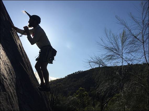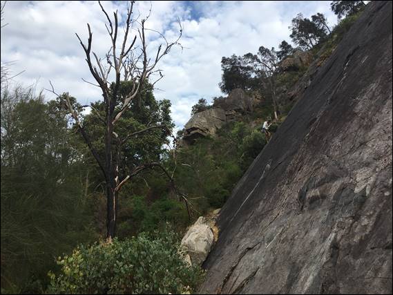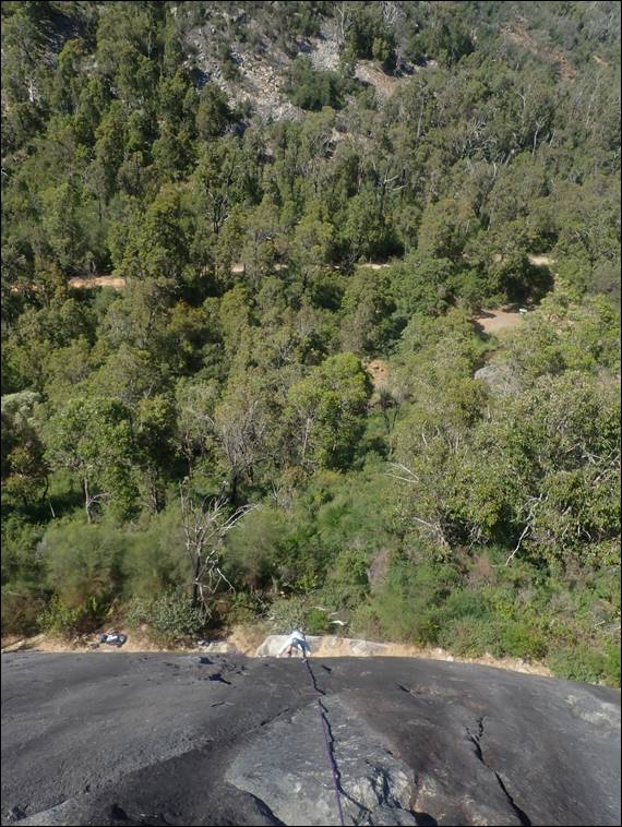 There quite simply was not enough stopping distance, and sadly we collided. On my part the damage was not terrible due to the roo-bar, and we could carry onwards. For the poor kangaroo it was not such a good outcome. Not a great way to start the day, but it is a hazard that I have to accept what with all the early morning driving I do to feed my desire to climb. Fortunately a rare occurrence. Although I did wonder if nature was not on my side today, when before we started climbing two bull ants got up my trousers and bit me several times: