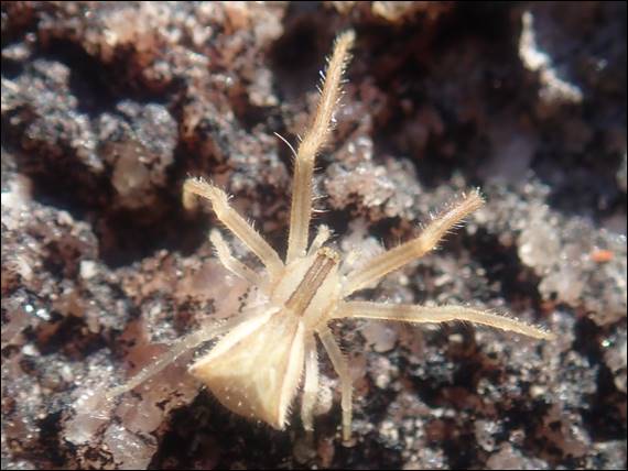 Onwards we marched, regardless of the grade, rating, or contrived nature of the routes and each one had its own charm. While Howsie was on lead I took the chance to look about and spotted a few interesting and very small spiders, and I wonder if he was also looking about while I climbed. Some would frown upon my wandering eyes, suggesting my focus should only be on the climber. But as I said it is all about risk management and being aware of the situation. These routes for the most part allowed wandering eyes, which spotted the above Trapezoid Crab Spider (Sidymella trapezia):